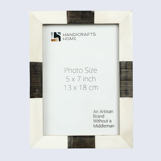 Ridged Black & White Bone & Resin Inlay Picture Frame- 4x6 & 5x7