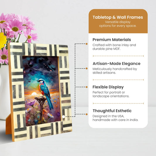 Grey & White Bone Inlay Picture Frame - 4x6 & 5x7