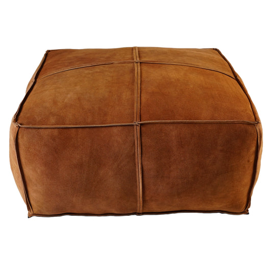 Pouf Leather Suede Solid Cognac