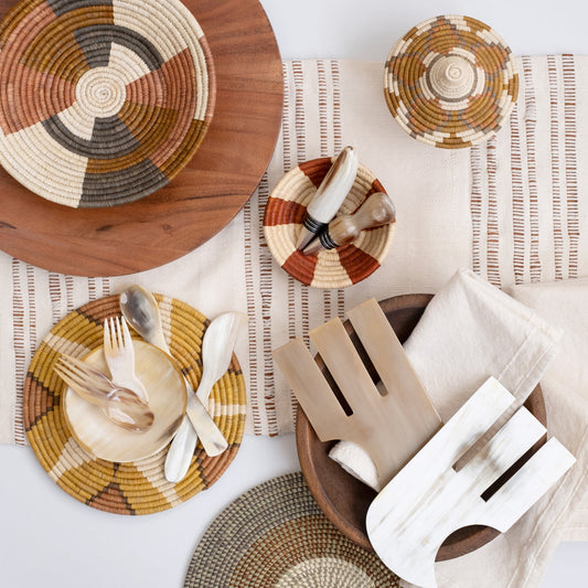 Our Serveware Collection is designed to make hosting feel effortless and beautiful — from sculptural serving bowls and trays to timeless platters, pitchers, and utensils. Each piece is chosen for its craftsmanship and versatility, blending natural materials, refined silhouettes, and textures that shine on any table. Thoughtfully curated to mix seamlessly with SAINT K dinnerware, our serveware brings both function and quiet elegance to gatherings big and small.