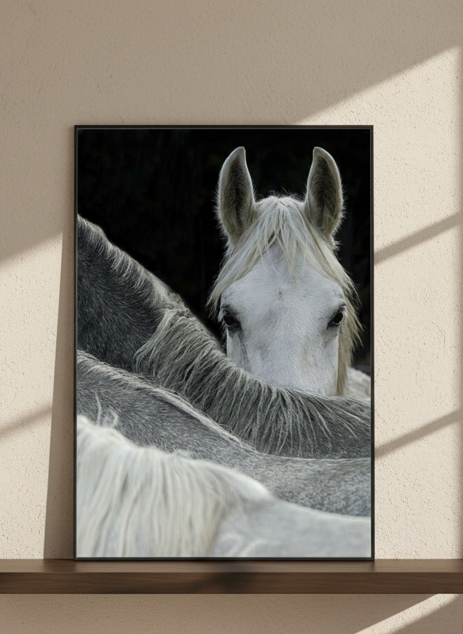 Look is a striking contemporary artwork printed on Fiber Texture Canvas, giving it a rich, tactile surface that enhances its bold design. The layered textures and modern composition create visual depth, while the Poly Black Float frame adds a crisp, gallery-style finish. Perfect for making a statement in any room.