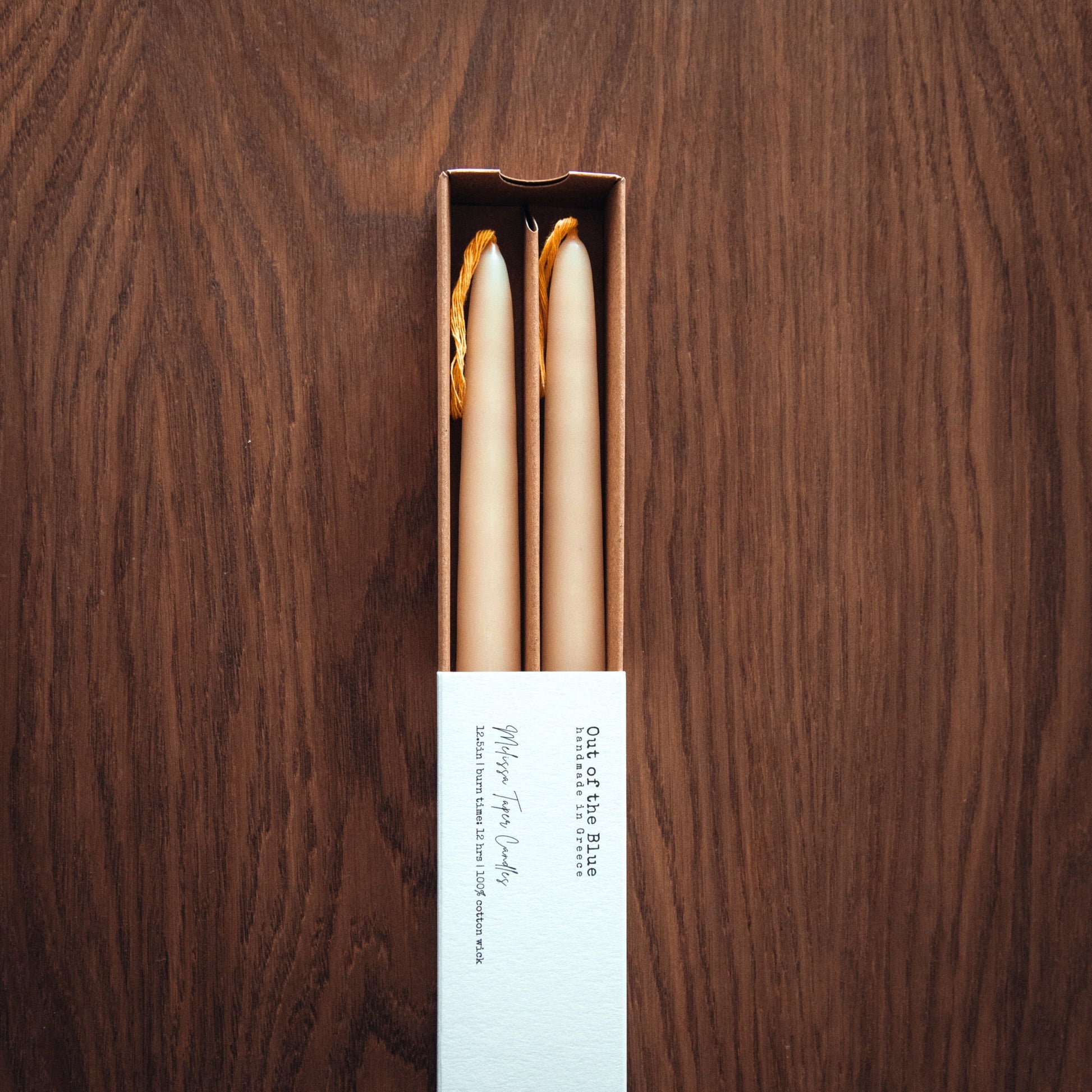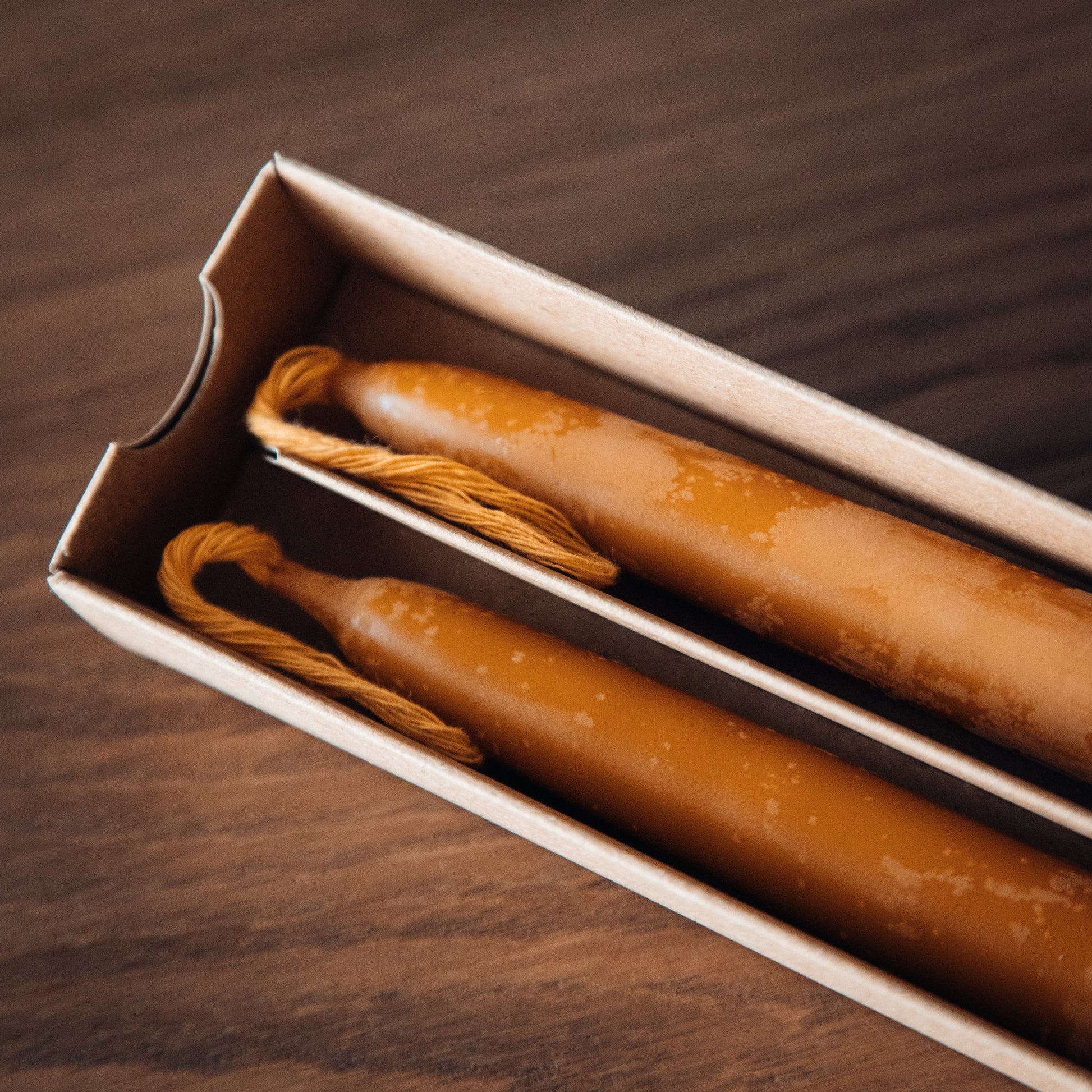 Illuminate your space with the shimmering light and warm scent of our 100% Pure Beeswax Taper Candles* made from the finest Greek beeswax. Create a setting of togetherness by adding a warm, inviting touch to any gathering.