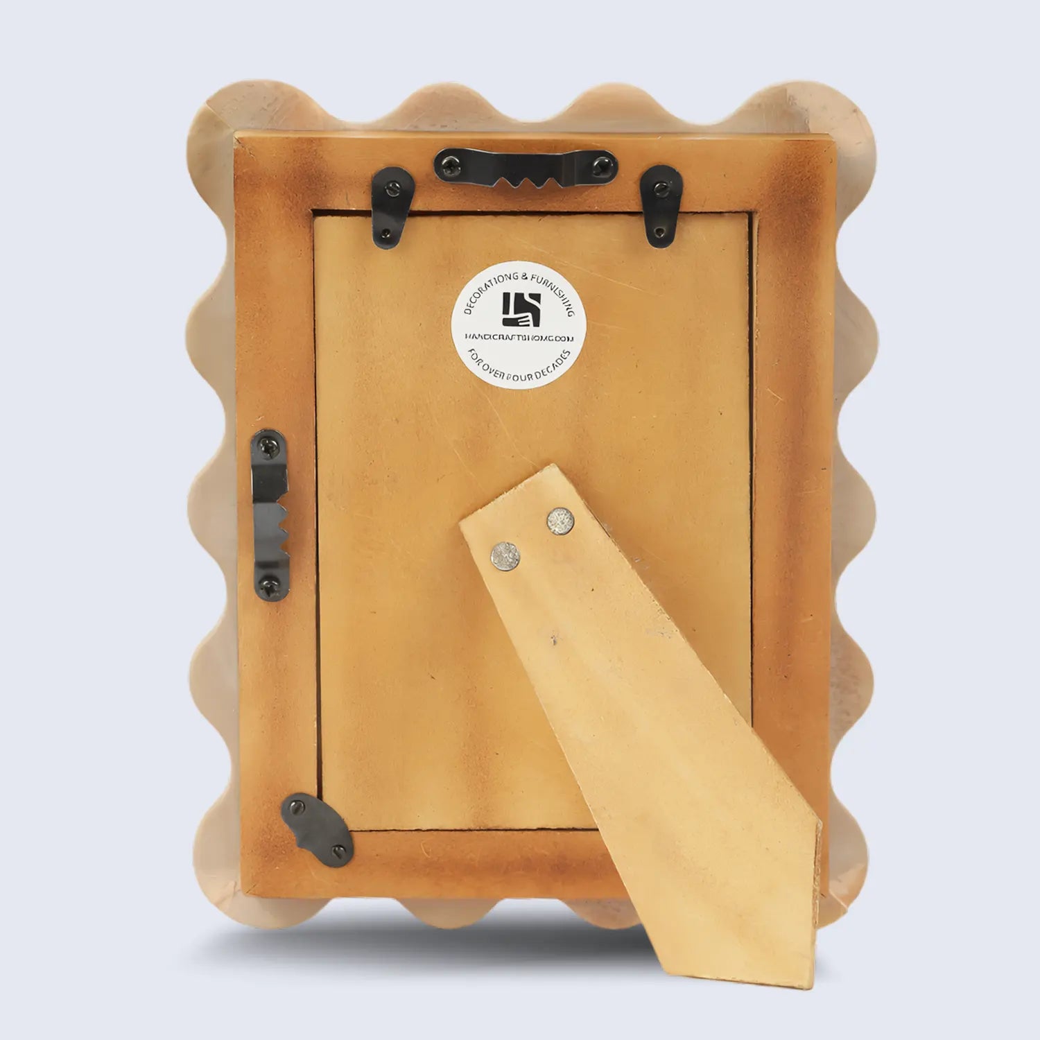 Add a touch of artisan charm to your space with the Handicrafts Home Picture Frames, handcrafted with precision and care. Featuring a distinctive scallop pattern made from brown and white resin inlay, this elegant frame is mounted on a durable Pine MDF base.